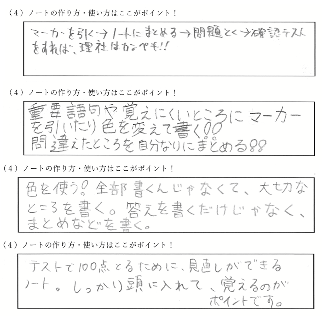 ただ問題を解いた答えが書いてあるだけのノートではない、自ら学ぶことのできるようになる「本当のノートの使い方」をお伝えいたしました。