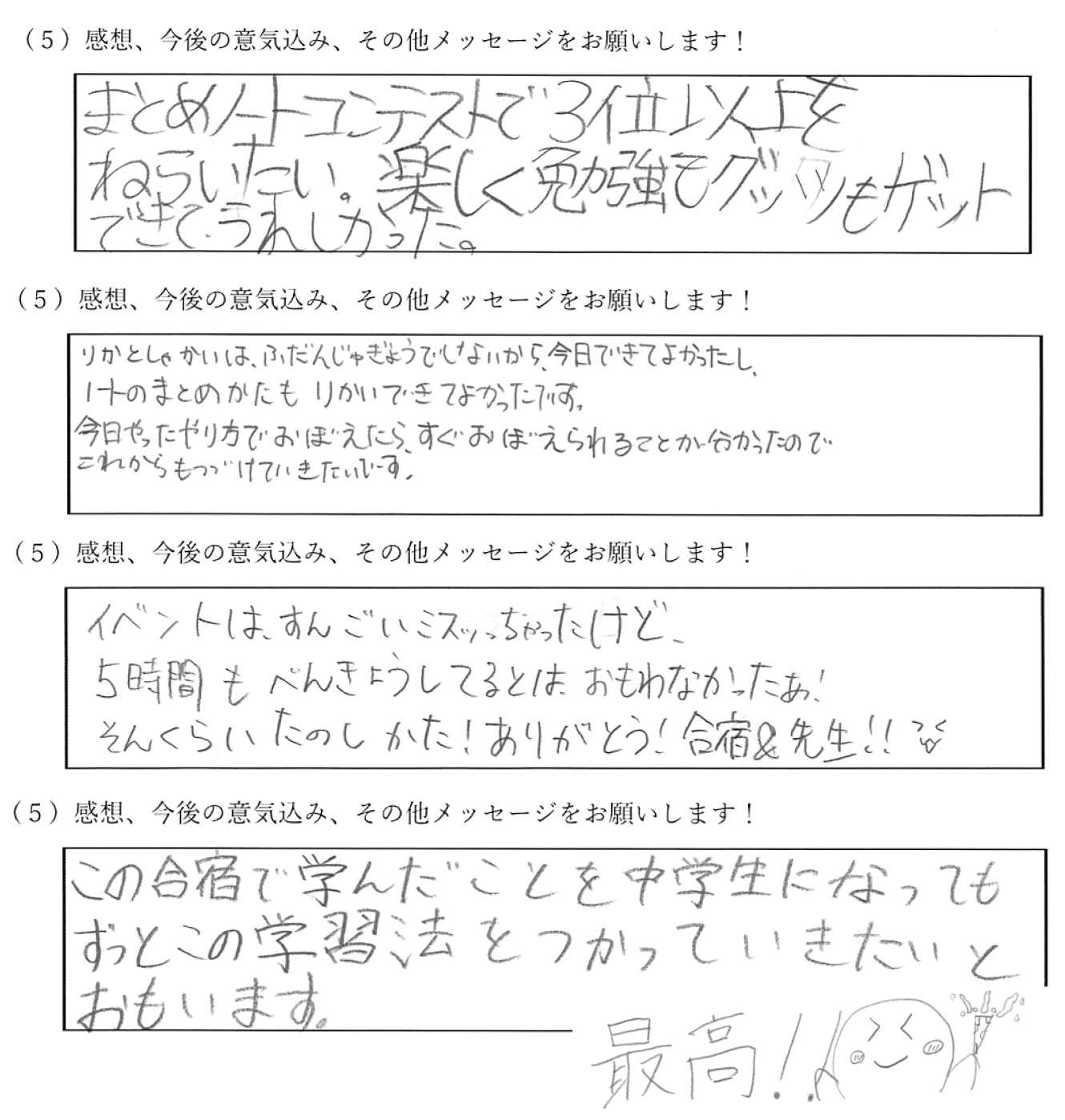 参加したお子さまのアンケートを、一部ご覧ください!