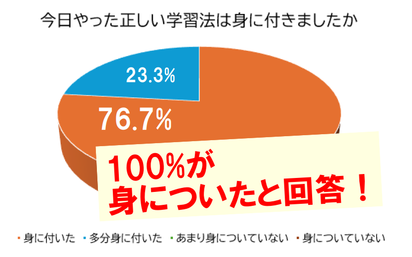 ただやり方を教わって終わりではなく、学習法指導ののち豊富な実践をまじえて、「自分でできるようになる」を目指して取り組みました。