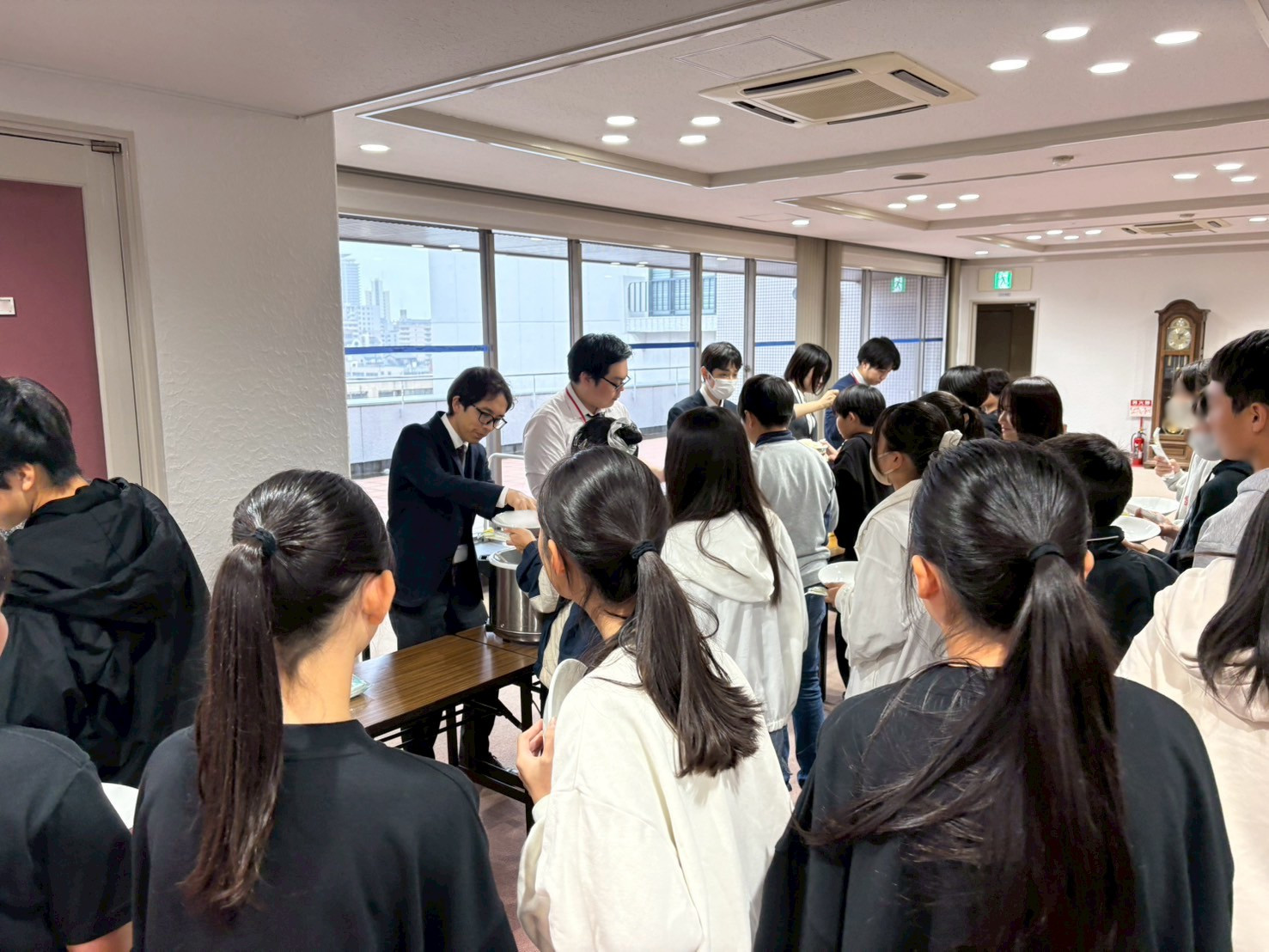 もはや定番となった「学習法×カレー」。先生たちによそってもらい、みんなでいただきます!