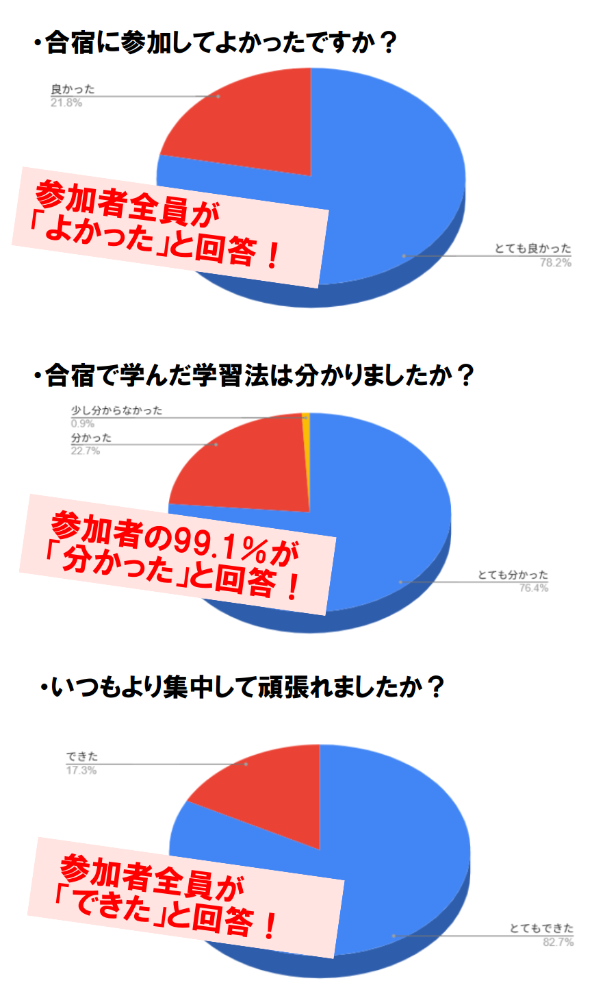勉強のやり方が変わった!あっという間の6時間だった!など、大満足の声を多数いただきました!