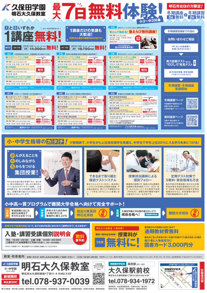 この機会にぜひ、久保田学園 明石大久保教室の授業を体感してみてください!