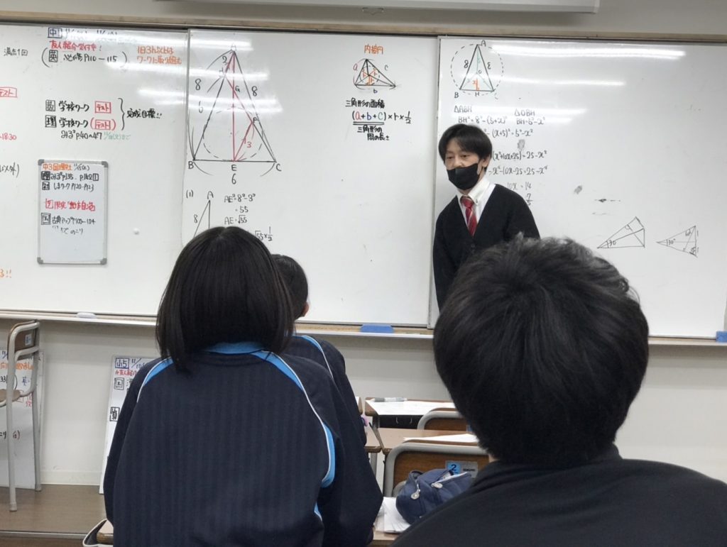 例えば、中学3年生は、2学期に入ってから毎回授業後に補習授業を行ってきました。授業後の22:00から22:30、月曜日は英語、木曜日は理科、苦手なお子様を対象に実施してきました。また今月に入ってからも、数学の授業の進み具合が速い舞子中学校のお子様を対象に、「三平方の定理」の補習授業を実施しました(こちらは授業のない日の夕方に実施しました)。
