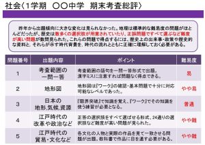 その分析をもとに各中学校の傾向に合わせたテスト対策授業を行い、
