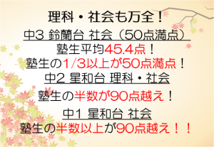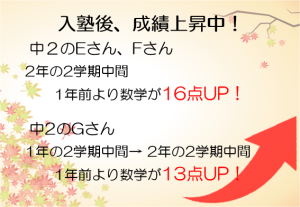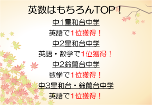 いつも当塾のHPをご覧いただきましてありがとうございます。各中学校では2学期中間考査の結果が次々と返却されました。