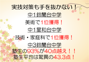 その結果、理科・社会のみならず、実技教科においてもいい点数・順位を出しています!